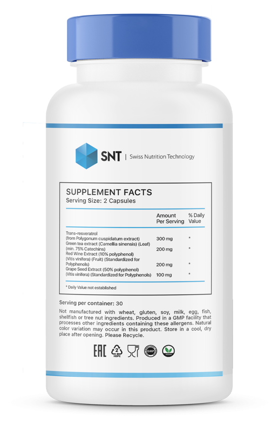 • Антиоксидантное действие: Ресвератрол является мощным антиоксидантом, что означает, что он помогает защищать организм от вредного воздействия свободных радикалов. Свободные радикалы могут вызывать окислительный стресс и способствовать развитию различных заболеваний, таких как сердечно-сосудистые заболевания, рак и некоторые формы деменции.