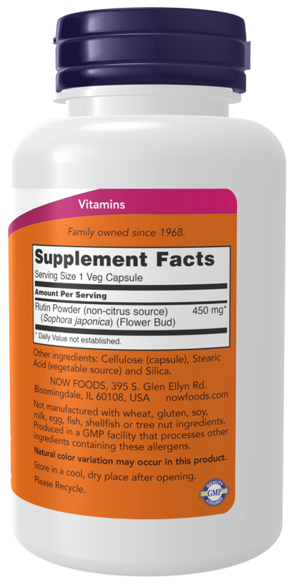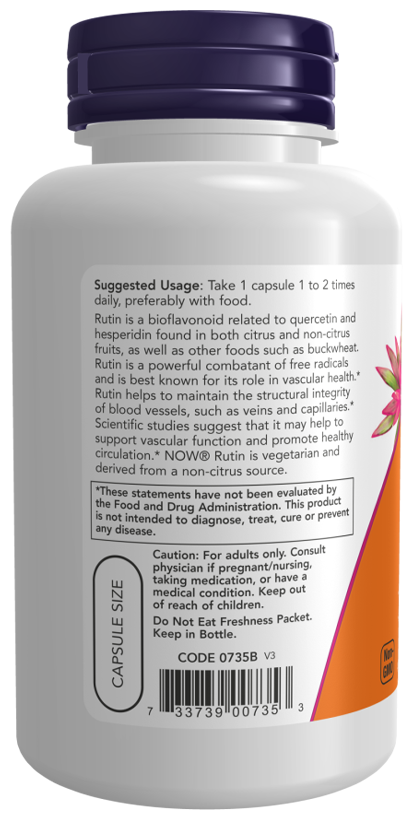 Рутин - это биофлавоноид, схожий с кверцетином и гесперидином, который содержится в цитрусовых, нецитрусовых фруктах и продуктах, таких как гречневая крупа. Он является мощным антиоксидантом, известным своей ролью в поддержании здоровья сосудов.