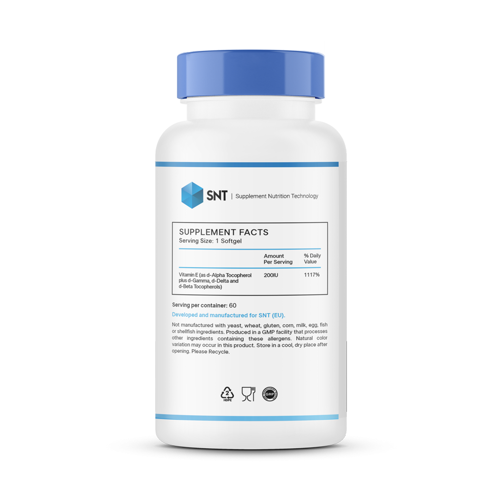 • Натуральный состав: Содержит d-альфа токоферол и смесь токоферолов (d-гамма, d-дельта, d-бета), что делает его эффективным и качественным источником витамина Е.